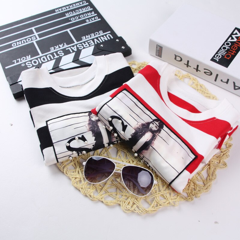 2022 children's clothing girls autumn long-sleeve T-shirt child 100% cotton beads round neck T-shirt basic shirt