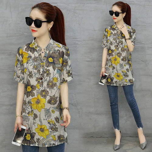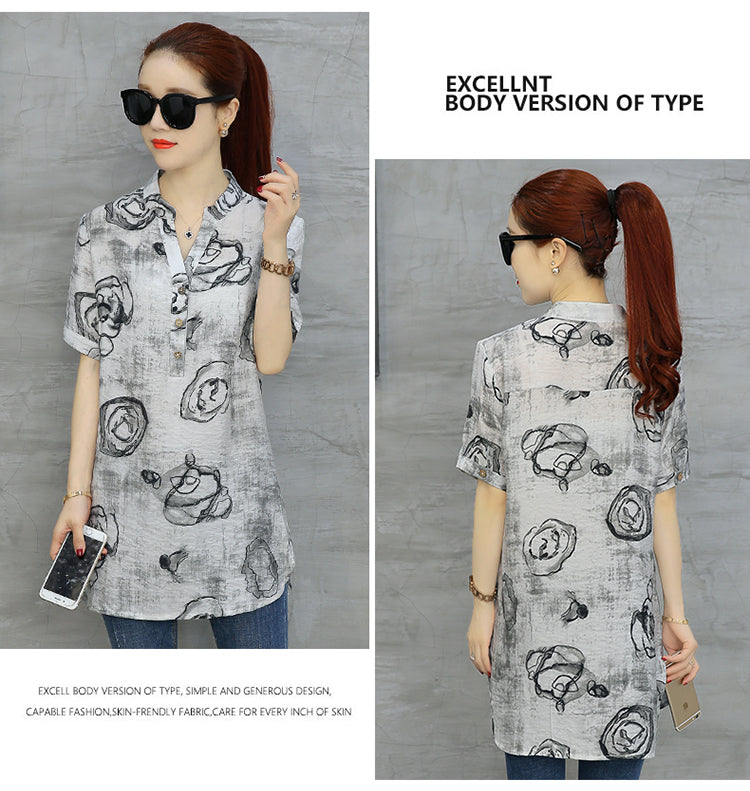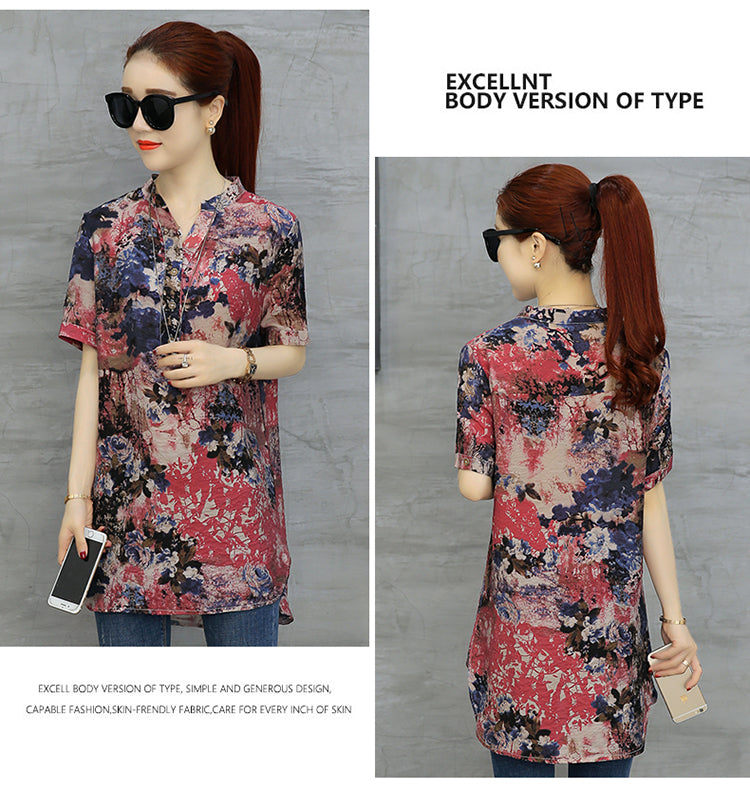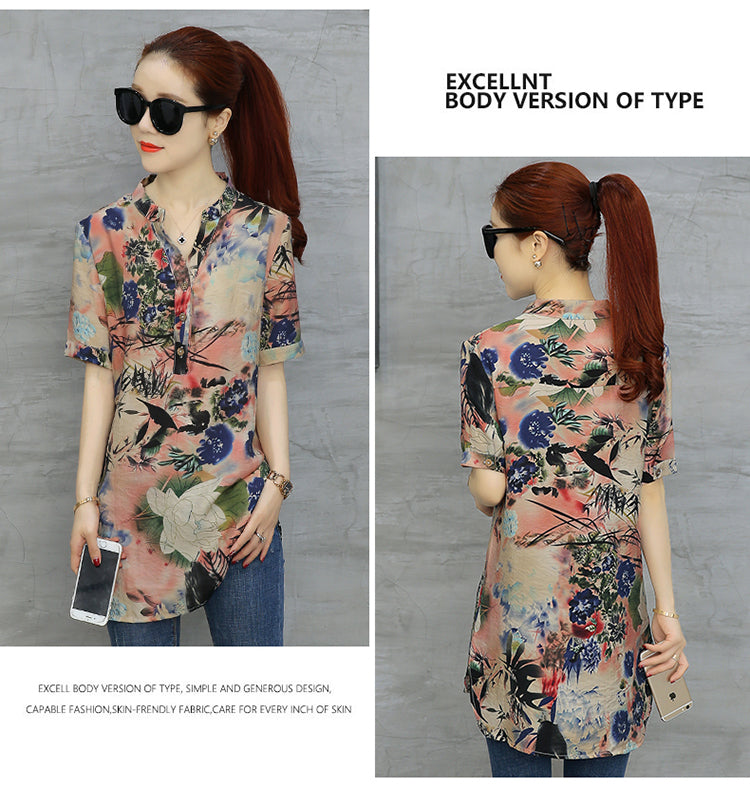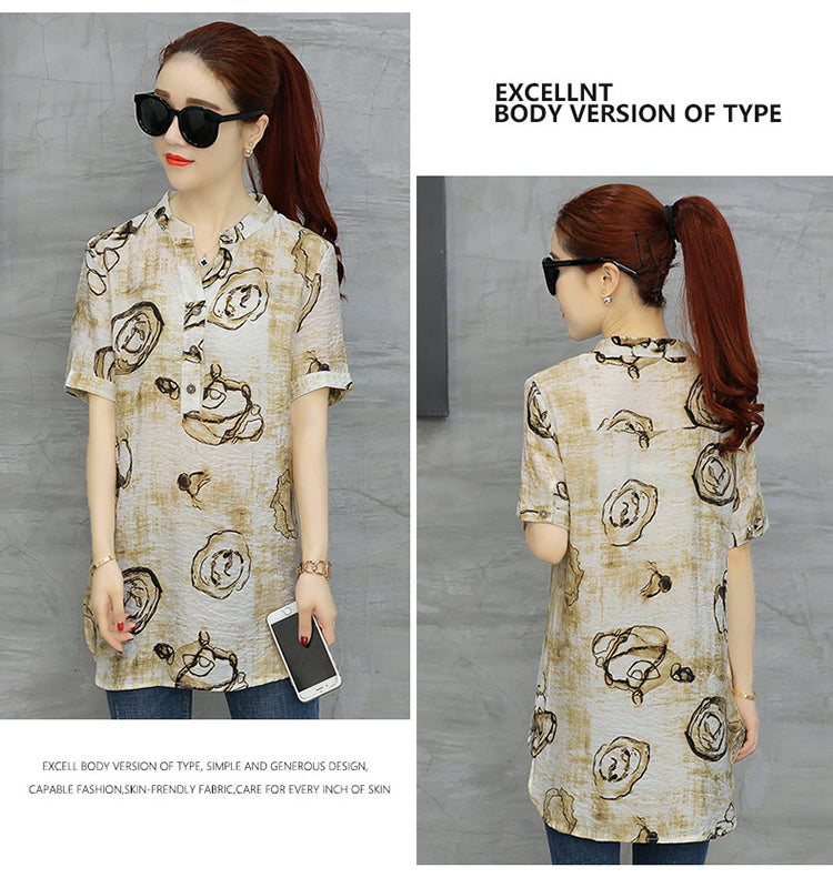 2023 Fashion Chiffon Summer V-neck Printing Women Tops