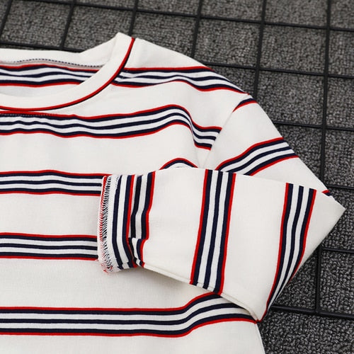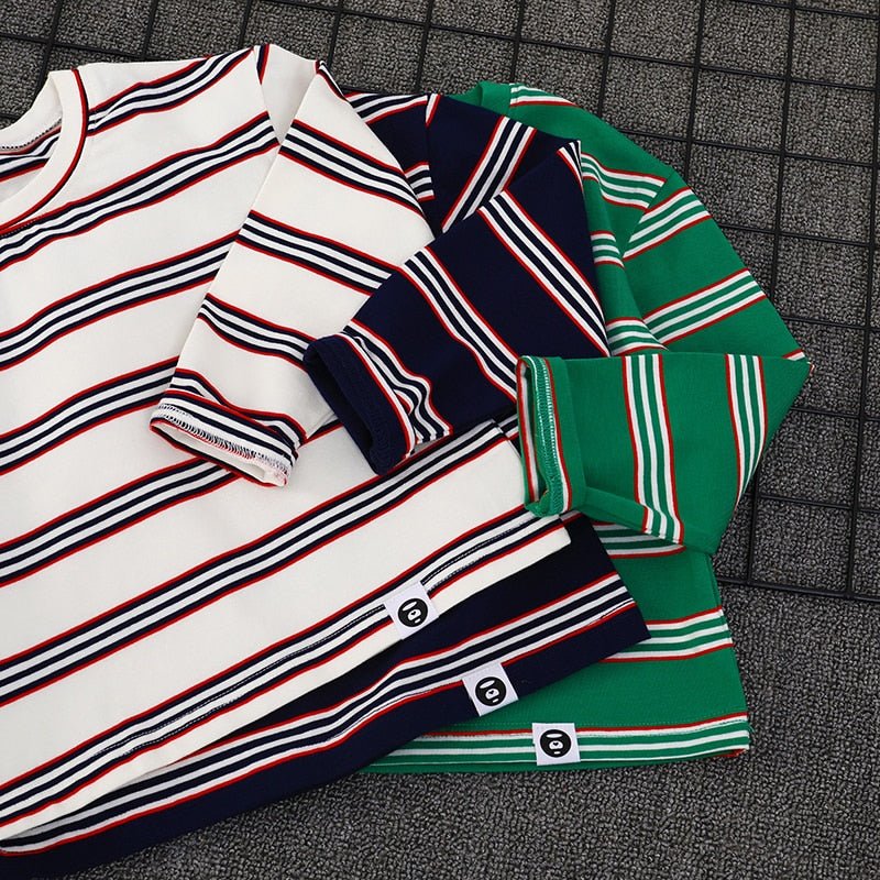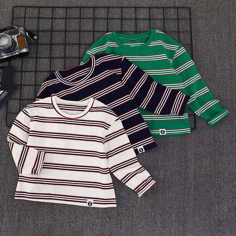 Boys' Striped Long-Sleeved T-shirt Pure Cotton 2022 New Children's Top T Fashion round-Neck Shirt Medium Children's Clothing