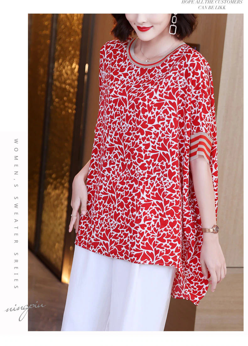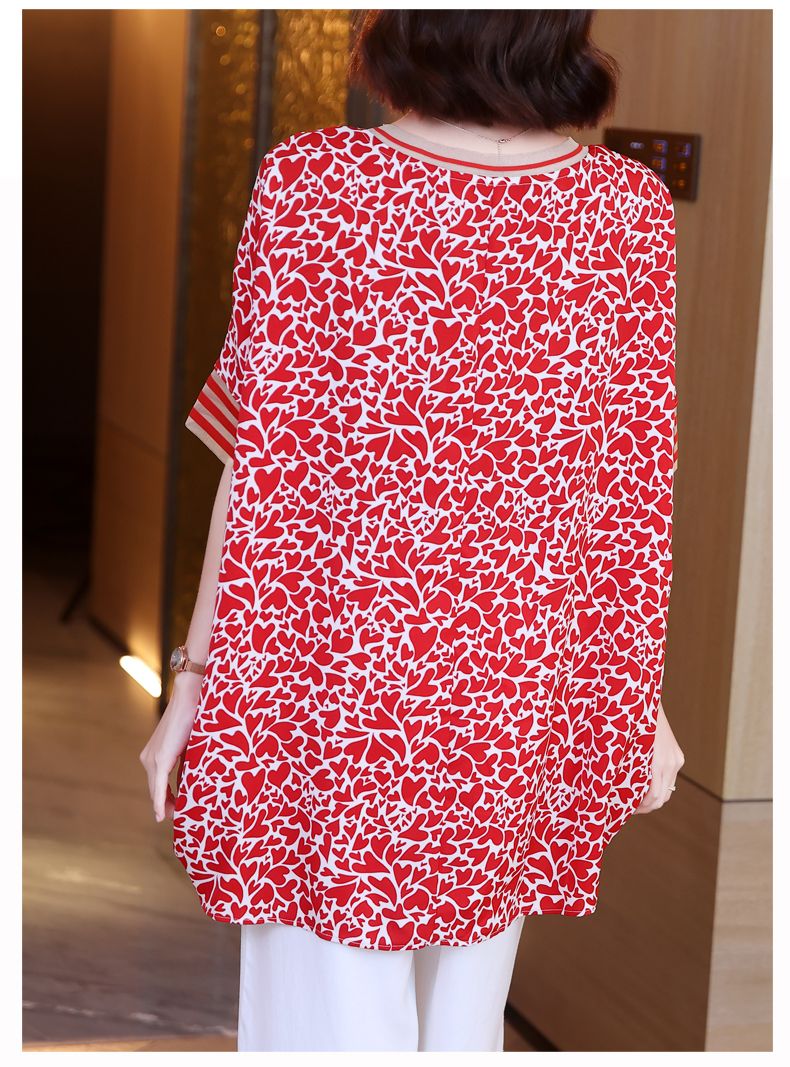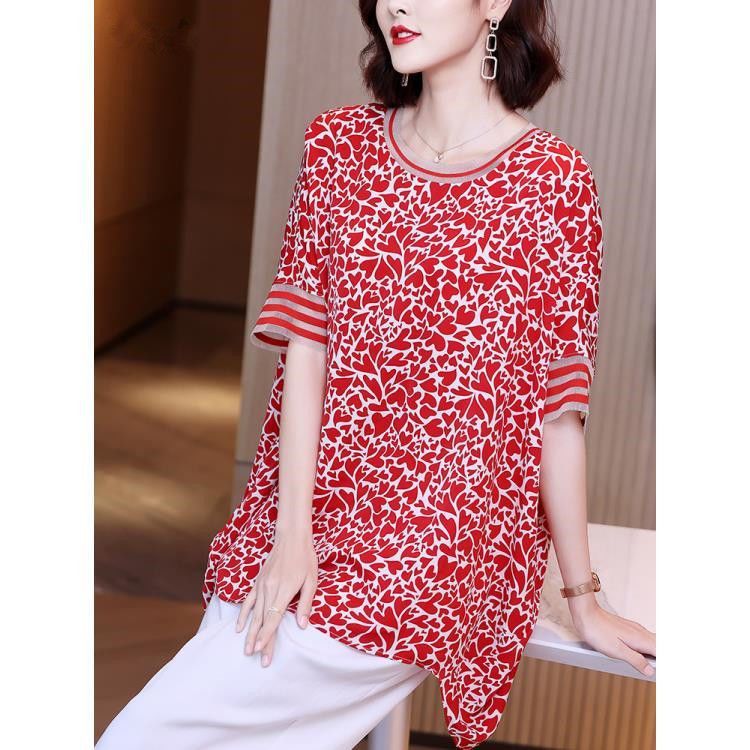 2023 Summer Oversize Women's Clothing Lace Patchwork Round Neck Printing Long Tops Women