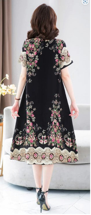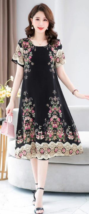 New Fashion 2023 Summer Dress For Long Vintage Loose Women Elegant Short Sleeve Casual O-neck Dresses Print Woman Clothing