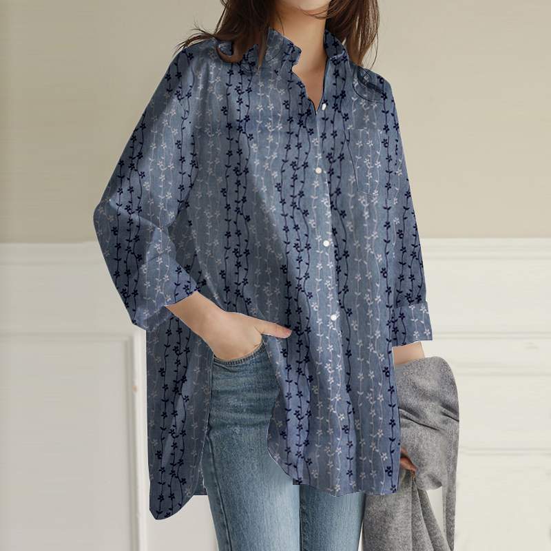 Oversize Blusa Fashion Floral Printed Shirt Vintage Lapel Collar Long Sleeve Blouse Casual Loose Pocket Tops Tunic
