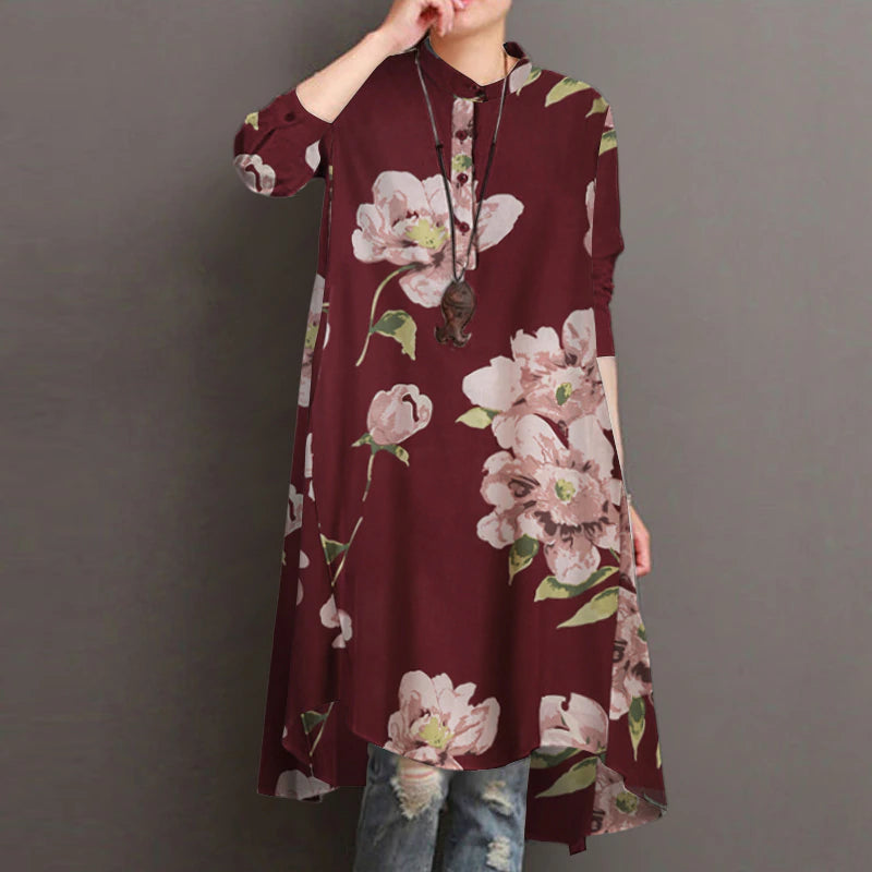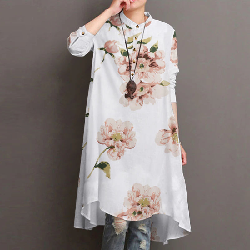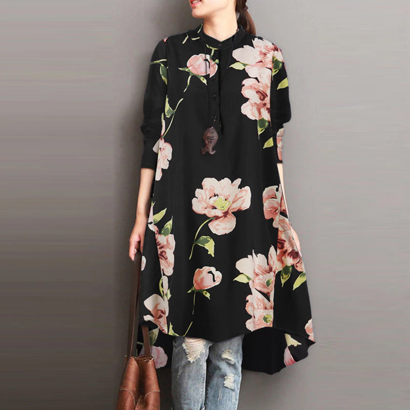 Women Vintage Long Shirt Spring Bohemian Floral Printed Blouse