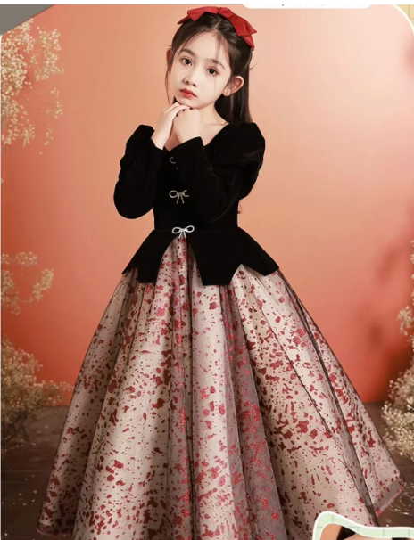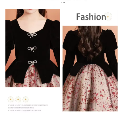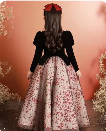 This elegant dress is perfect for girls aged 3-15 years. It features a satin mesh tutu long gown with French bubble sleeves, making it ideal for Christmas, prom, birthdays, or even as a New Year gift. Made with high-quality cotton and polyester materials, this ball gown dress has a knee-length silhouette and comes in a casual style with a charming bow decoration. It is designed to fit true to size, ensuring a comfortable wear for all seasons. The unique print adds a playful touch to this fashionable dress, making it a must-have in every girl's wardrobe.