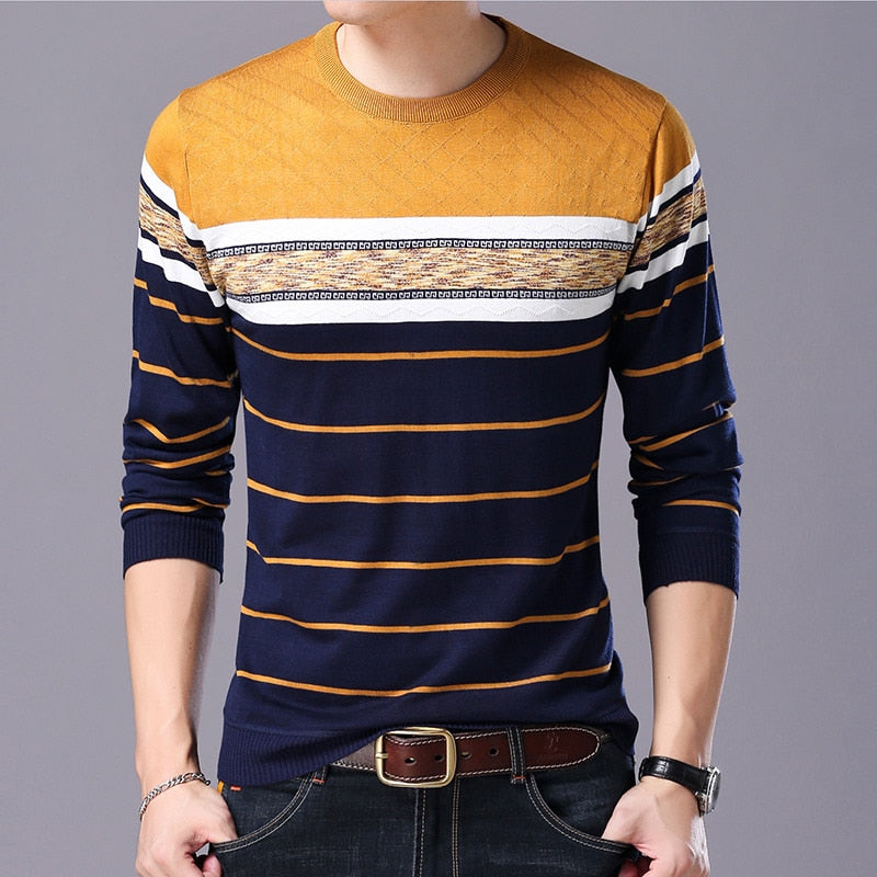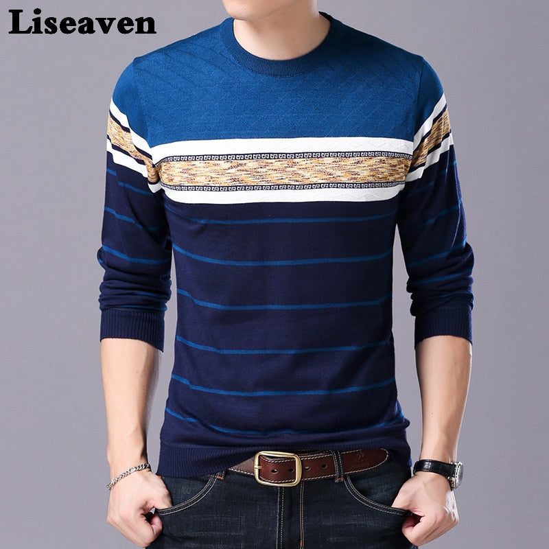 Liseaven Men Sweater O-Neck Casual Striped Sweaters Autumn Winter Brand Mens Pullovers