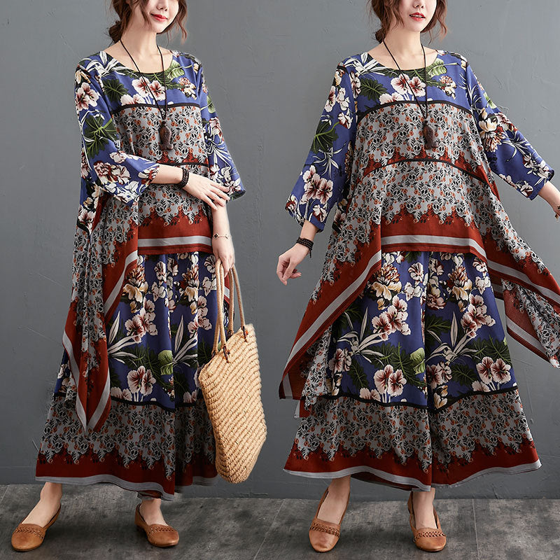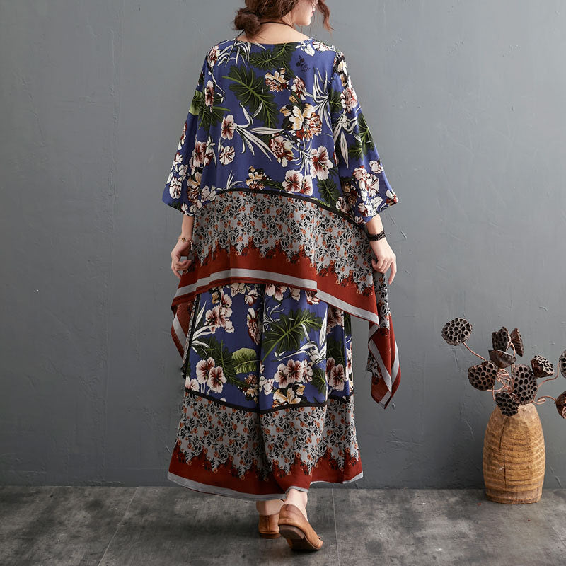 Spring New Large Size Cotton And Linen Ethnic Style Wide Leg Pants Two Piece Suit
