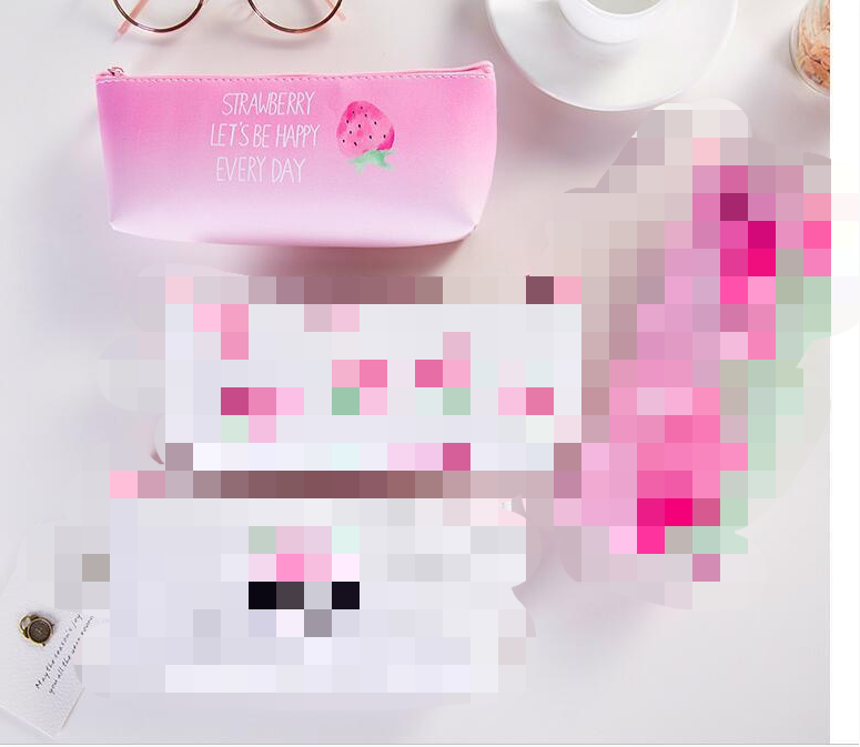 This stylish and adorable pink leather pencil case is shaped like a strawberry. Keep your desk organized and cute!